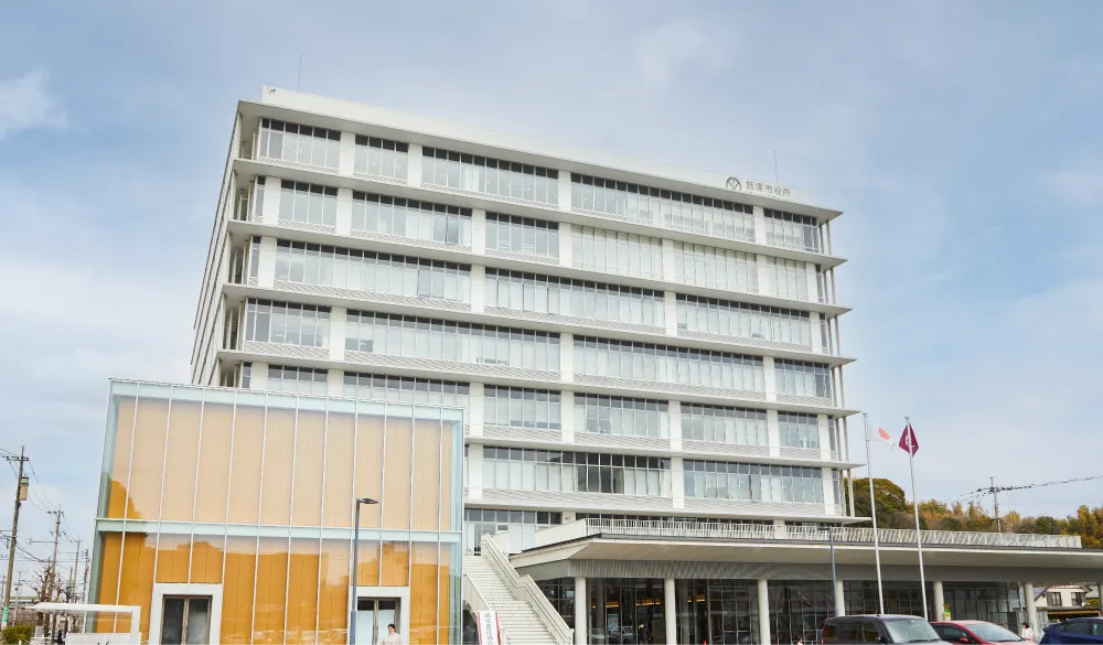 2017年に完成した「飯塚市役所」の新庁舎は、バリアフリーを意識した設計を随所に採用。外観はシャープな直線を基調とし、建物の近くに設置された駐輪場も、建物との調和を追求してデザインされ、その年のグッドデザイン賞を受賞しています。