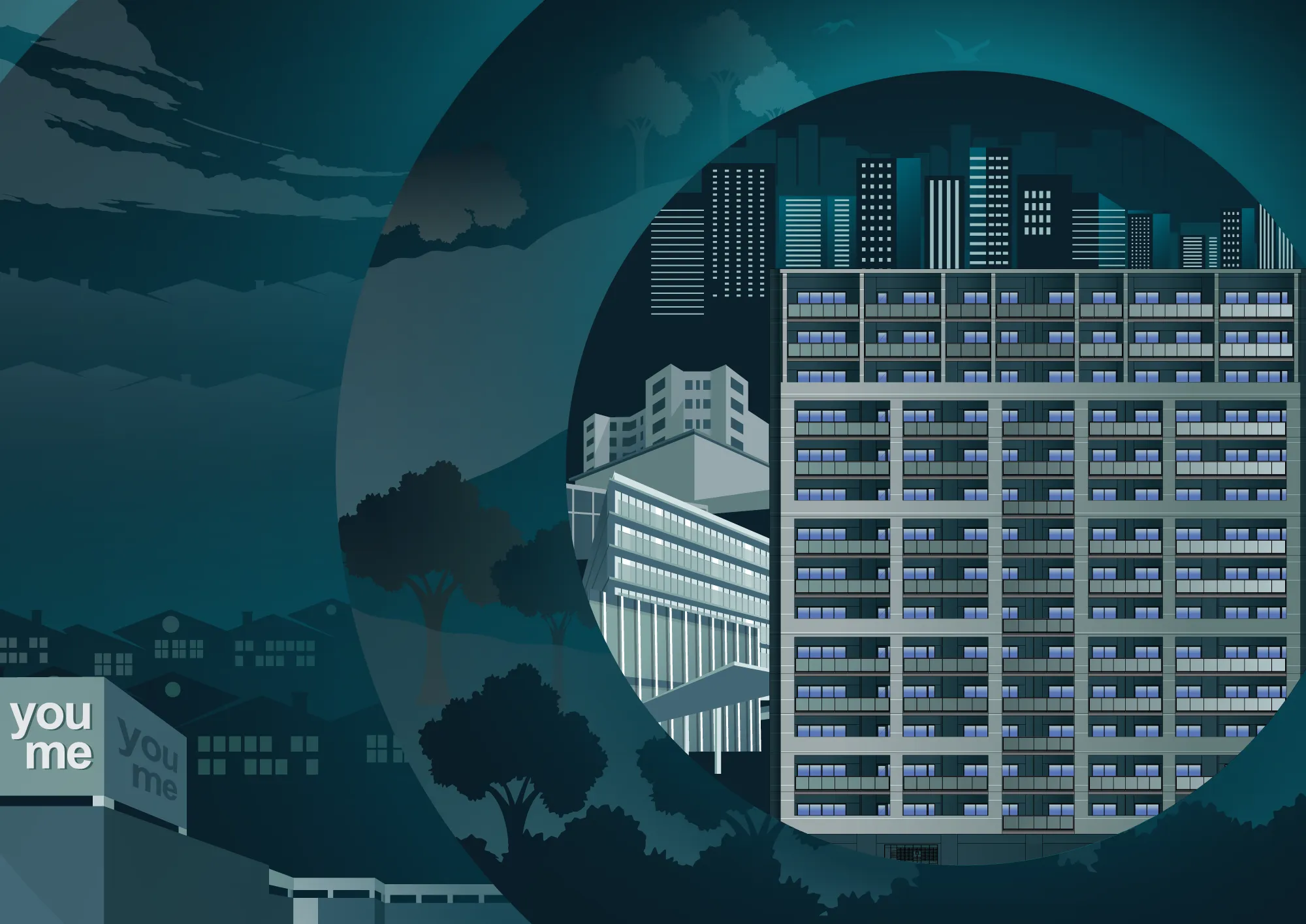 本物件は美しく機能的に生まれ変わった街並みを誇る、西側駅前・新街区のシンボルとして誕生。