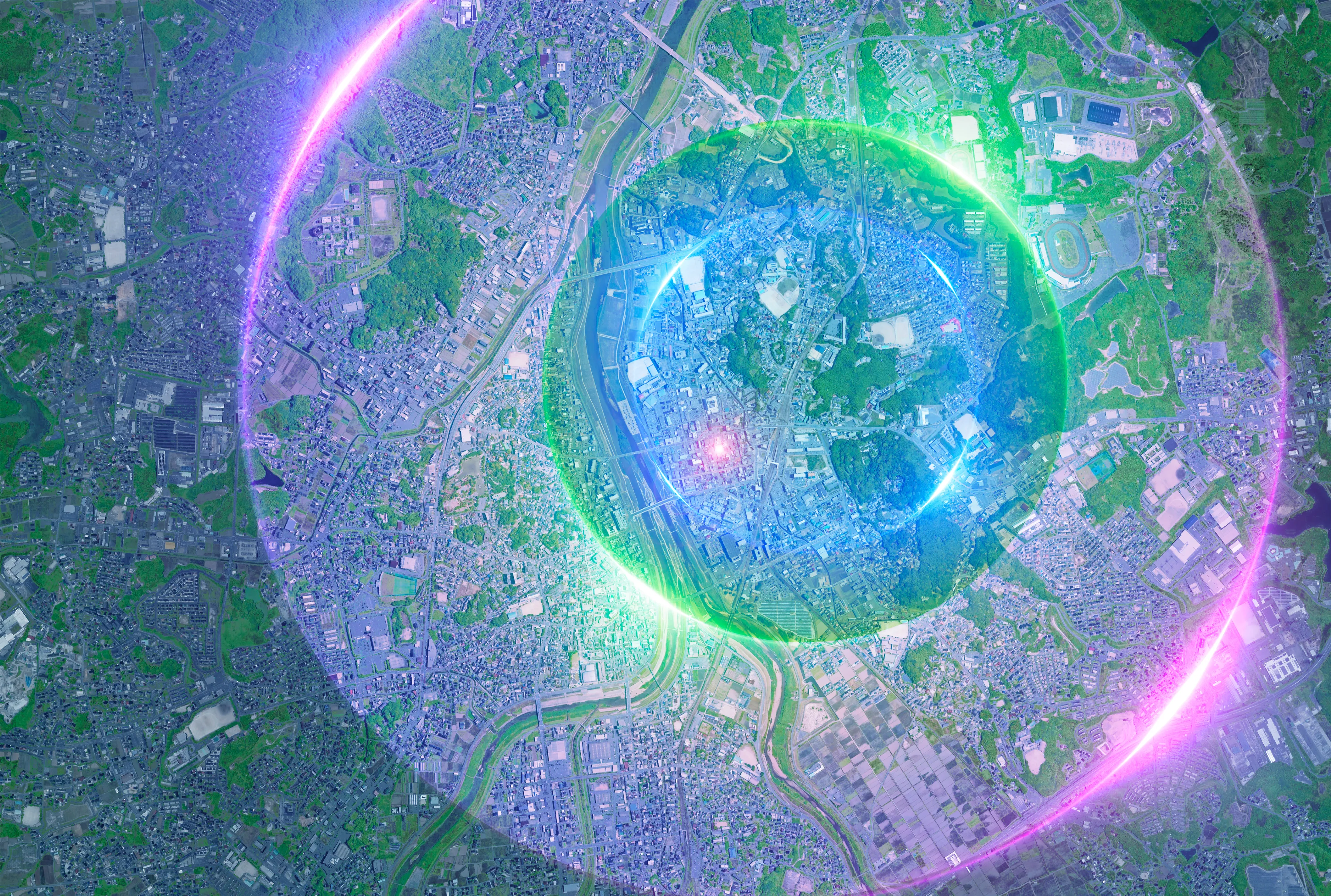 その間を流れる「遠賀川」流域に息づく潤い豊かな自然環境、舞台となるJR「新飯塚」駅西口エリアの都市機能、
