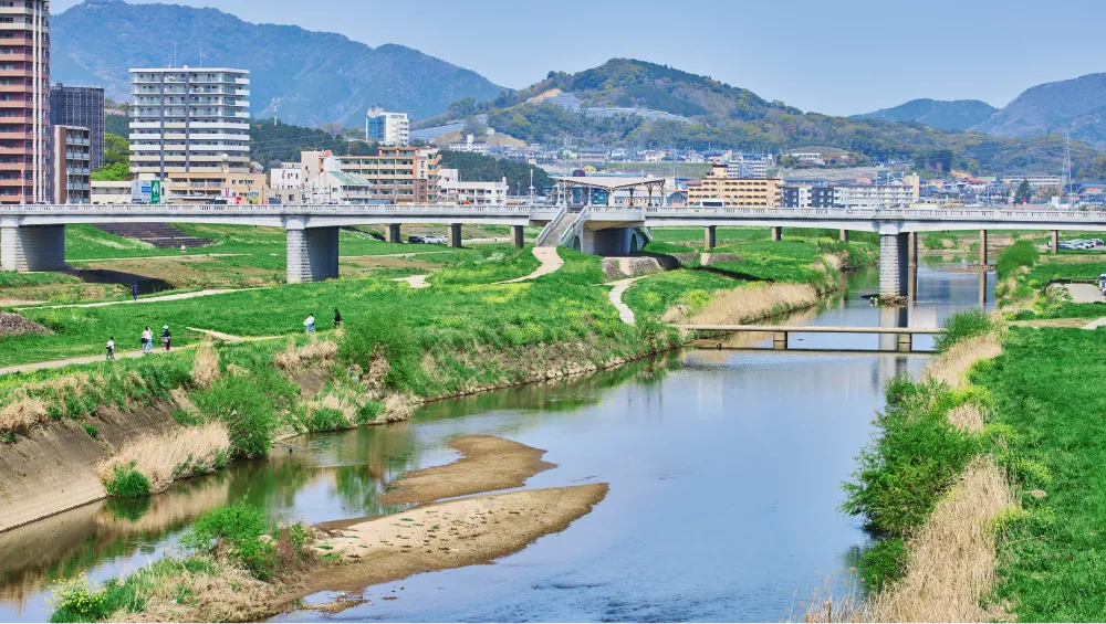 市街地を流れる「遠賀川」は、様々な面において、この地の人々の生活、文化と深い結びつきを持っています。
