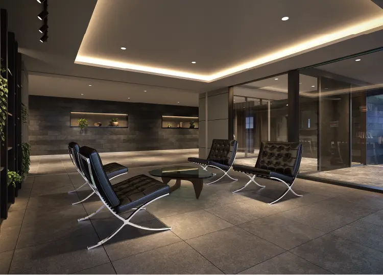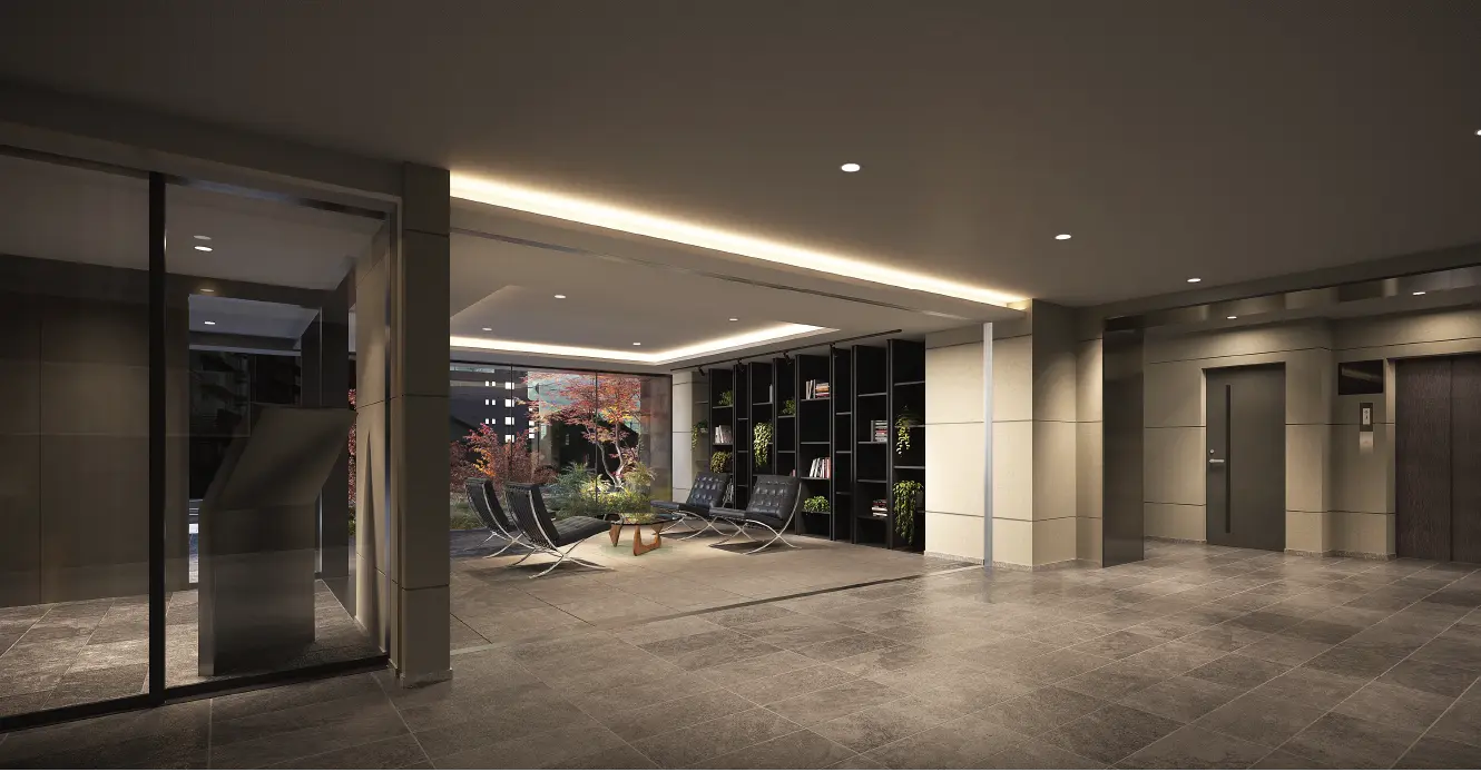 友人との語らいや読書など、多目的に使えるエントランスホール。