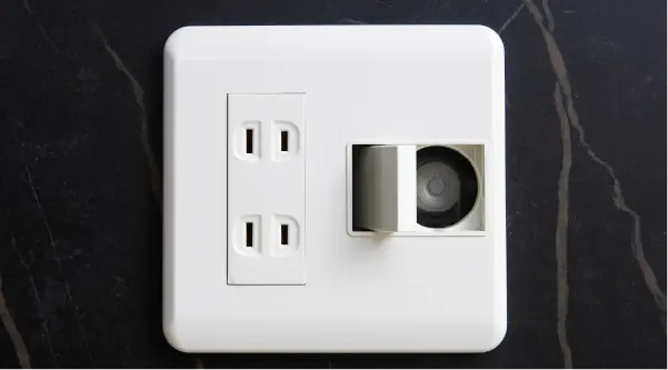 コンセント+TV・LANを一体化したマルチメディアコンセントをリビングに設置しています。
